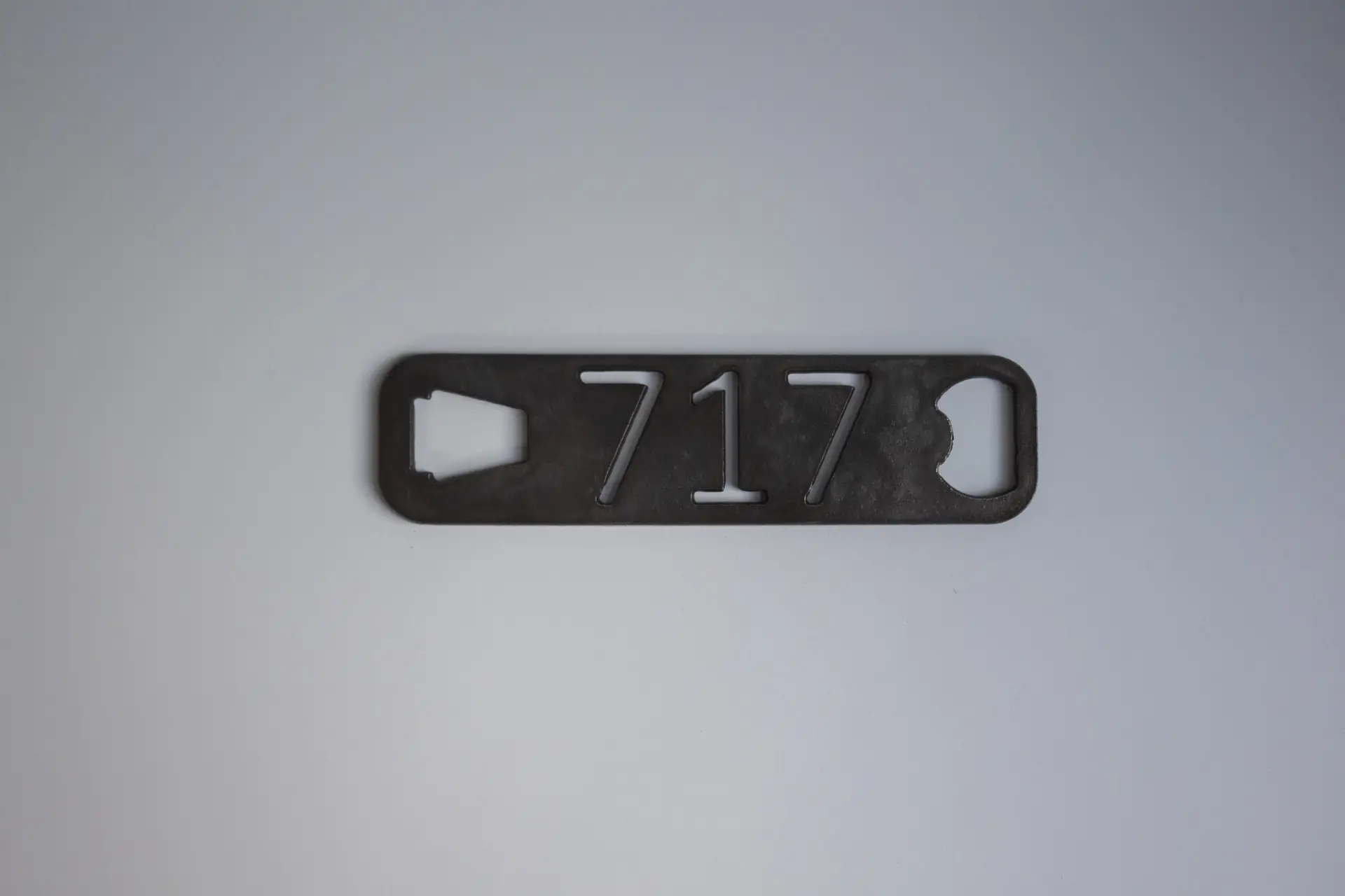 This heavy duty bottle opener is customized with ‘717’ and is made from metal.